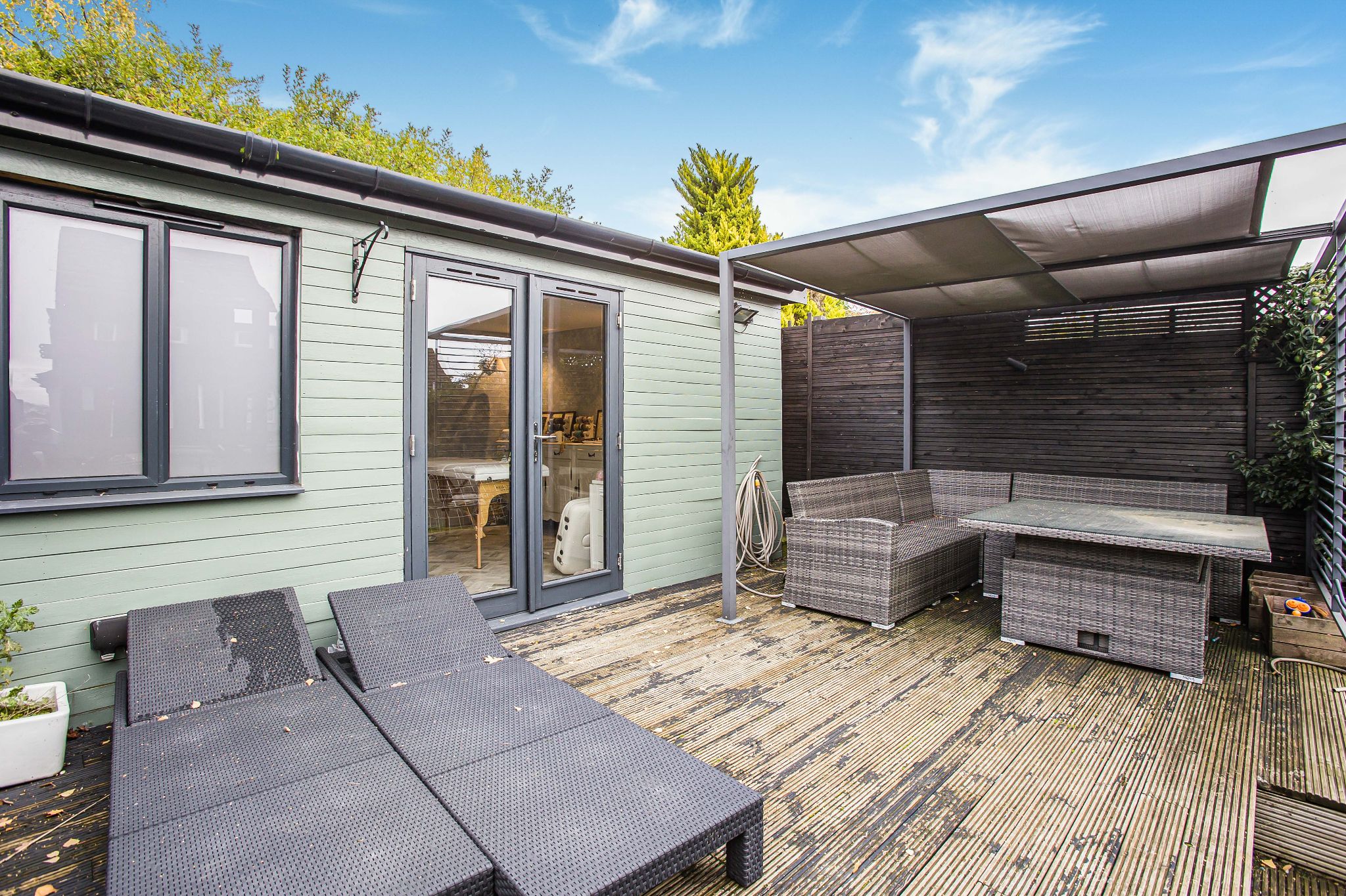 ENTRANCE HALLWAY LIVING ROOM KITCHEN/DINING ROOM GROUND FLOOR CLOAKROOM FIRST FLOOR 3 BEDROOMS FAMILY BATHROOM SECOND FLOOR BEDROOM - with En-Suite shower room 90ft REAR GARDEN CABIN OFF STREET PARKING